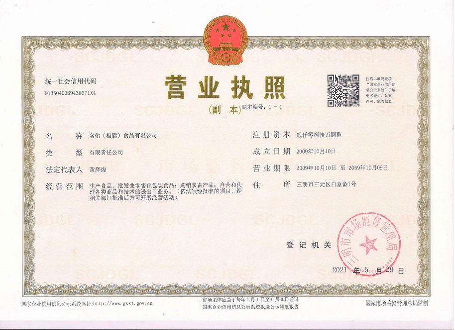 營業(yè)執(zhí)照-名佑(福建)食品有限公司